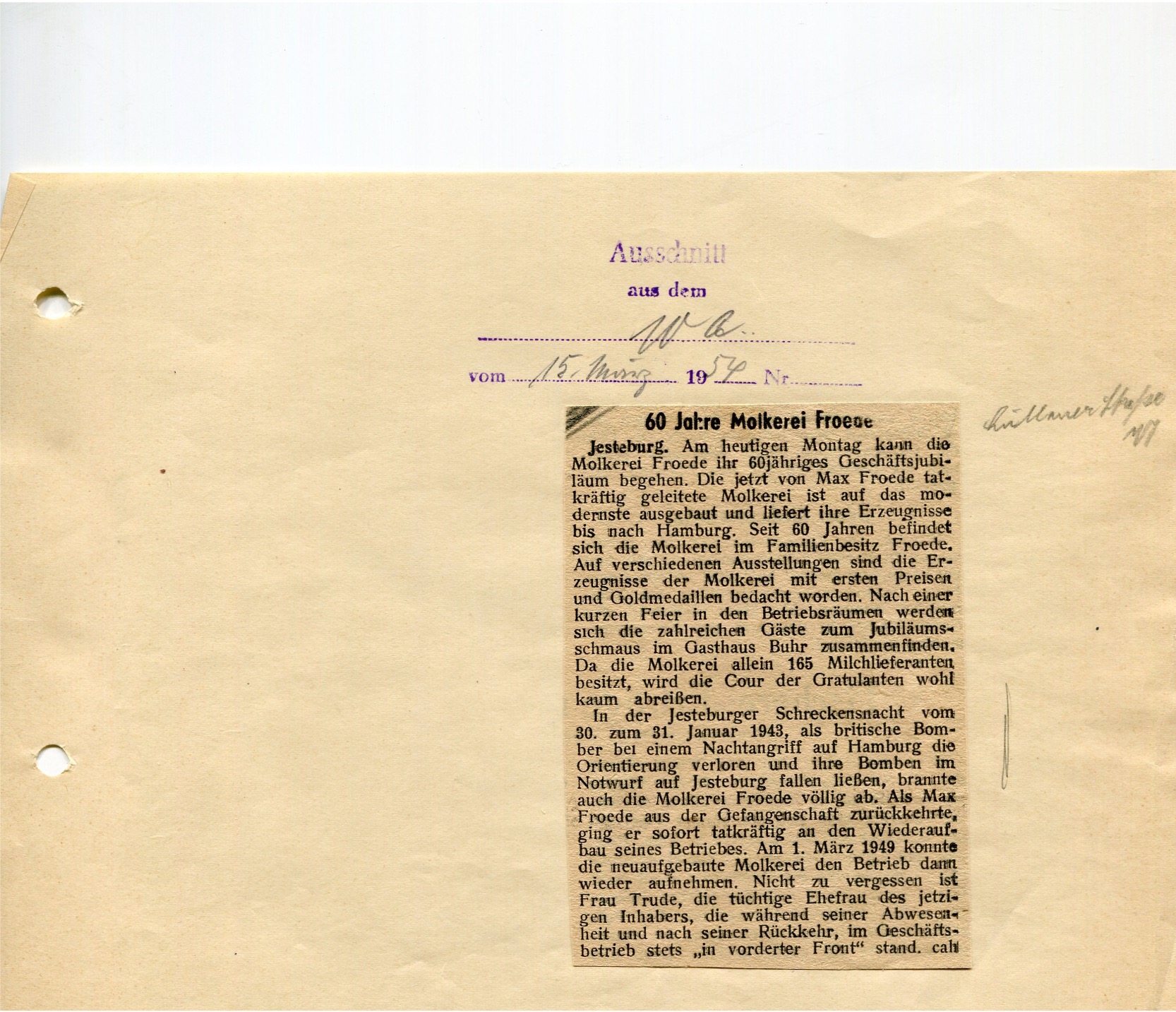 1949_03_01_Molkerei Froede_Neueröffnung_Zeitungsausschnitt